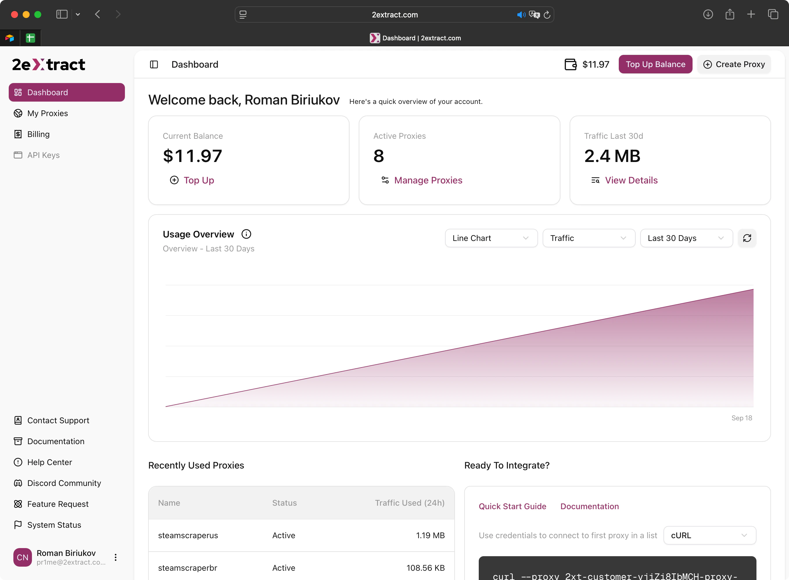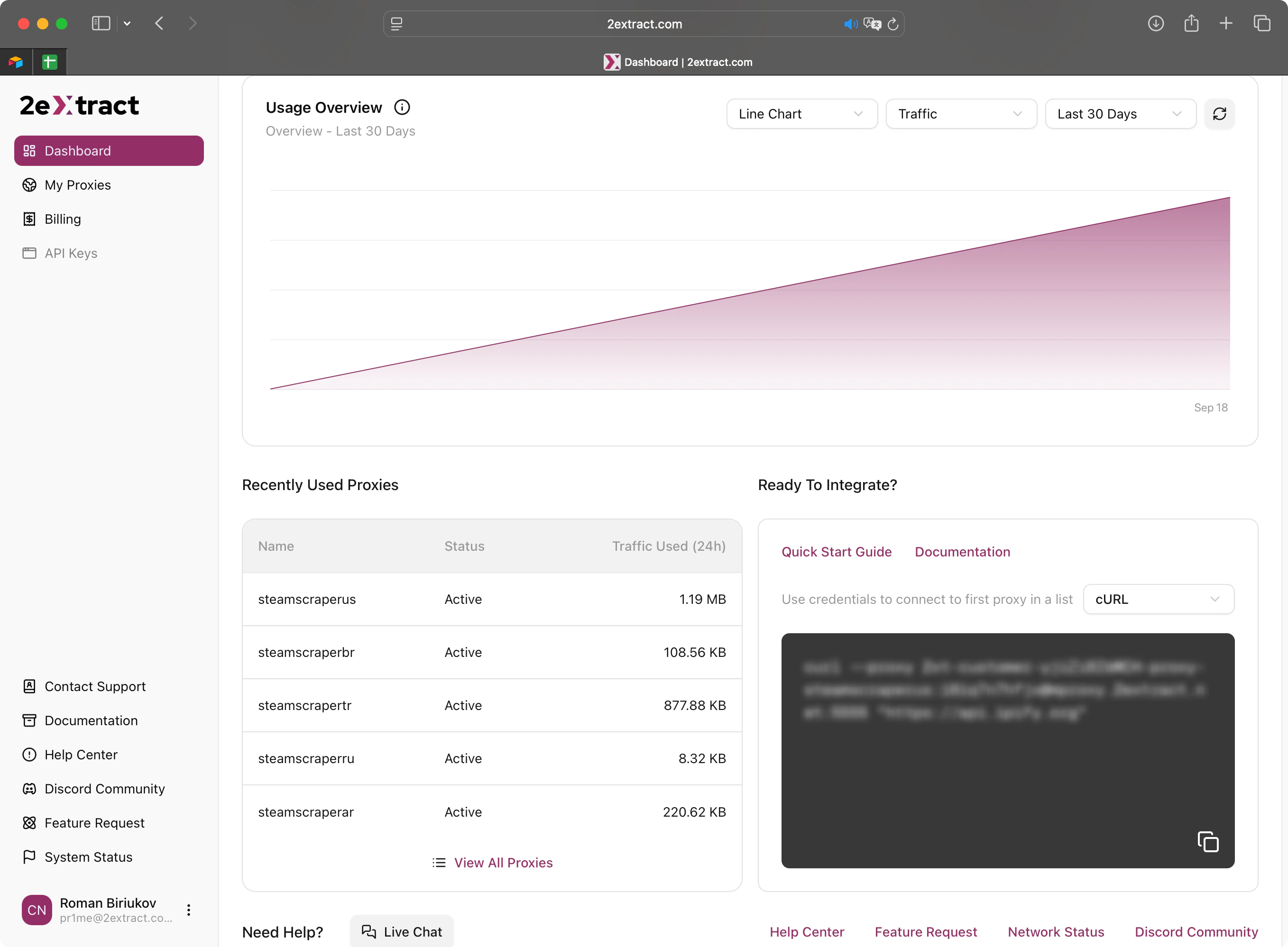 Your total data usage across all proxies in the last 30 days. Click to scroll down to the detailed chart.
