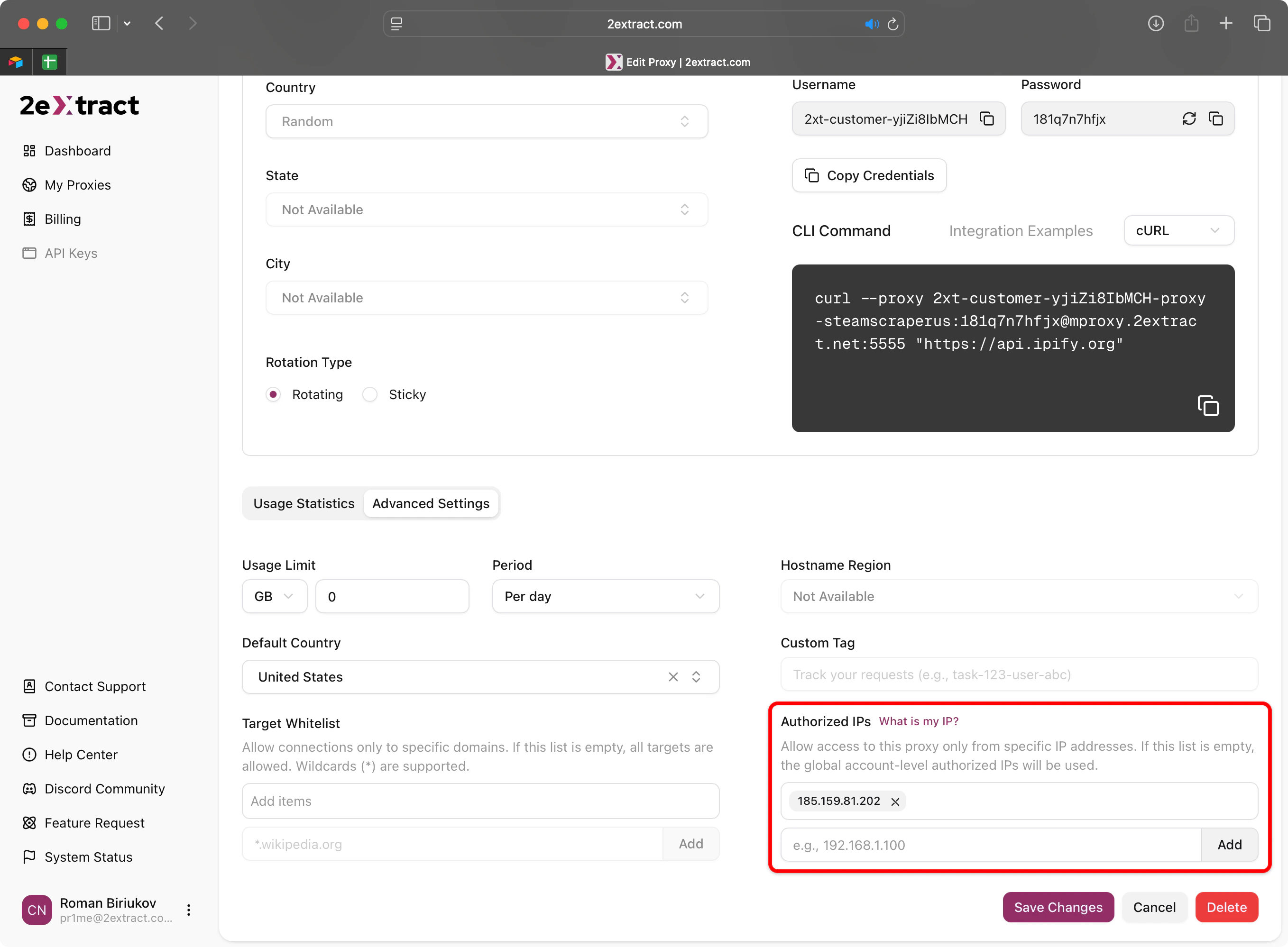 Authorized IPs list, the global account-level whitelist is ignored for that proxy.Step 3: Check Your Account Balance