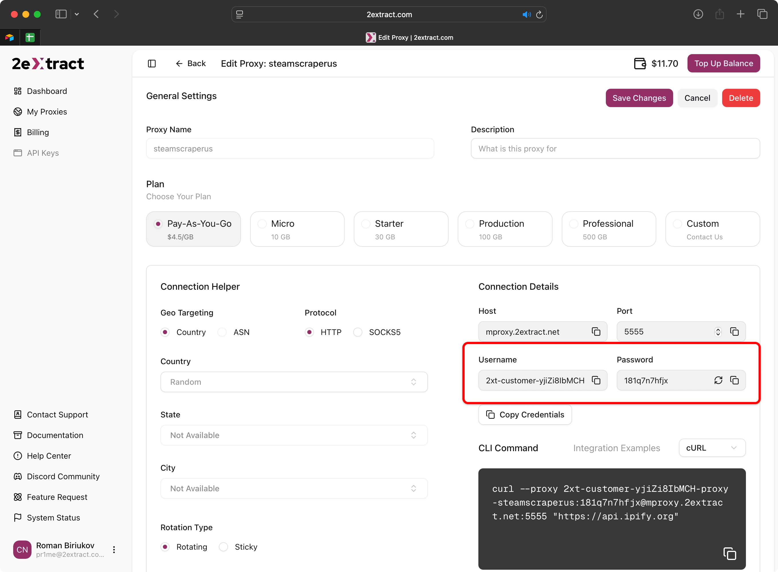 Our Pay-As-You-Go proxies stop working the moment your account balance reaches zero.- Navigate to the Billing page.