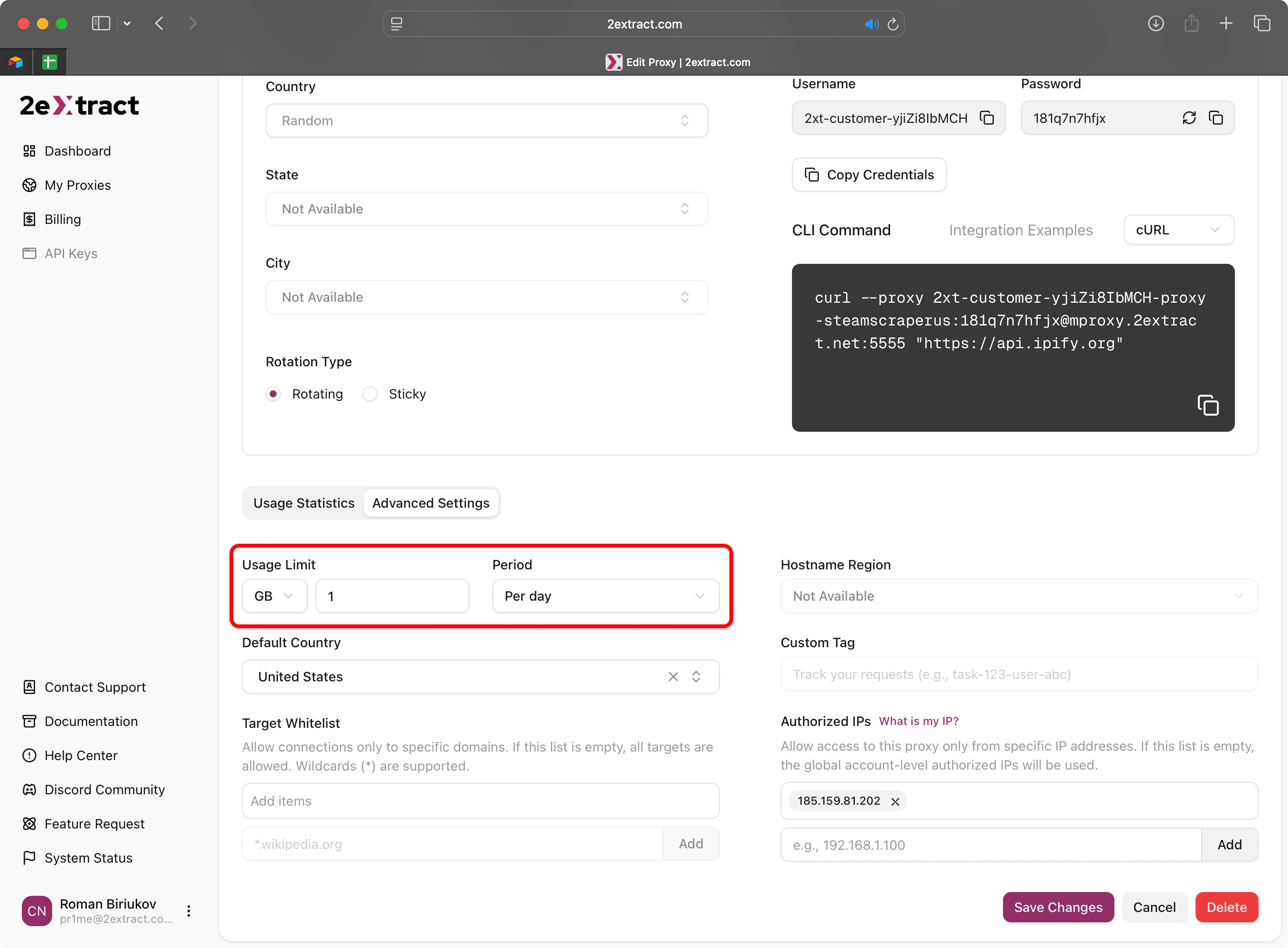 If you don’t want to wait for the automatic reset, you have two options:- Increase the Limit: Navigate to the proxy’s settings page and increase the